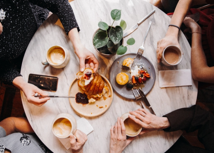 Los invitados pueden servirse libremente desde una mesa o estación cuidadosamente montada, con una amplia variedad de opciones dulces y saladas.